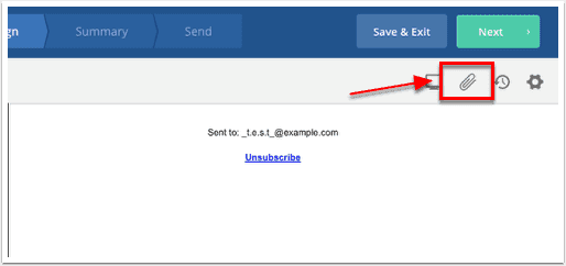 2. Klik in het scherm van de e-mail editor  op de paperclip rechtsboven in het scherm.
