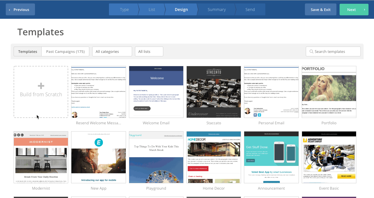1. Maak een e-mail in een campagne of automatisering met de optie “Uit het niets opgebouwd> Aangepaste HTML” of de optie “Uit het niets opgebouwd> Alleen tekst”.