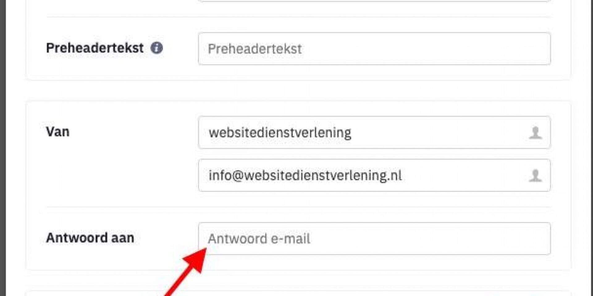 Let erop dat je ook bij het veld antwoord aan de juiste afzender invult.